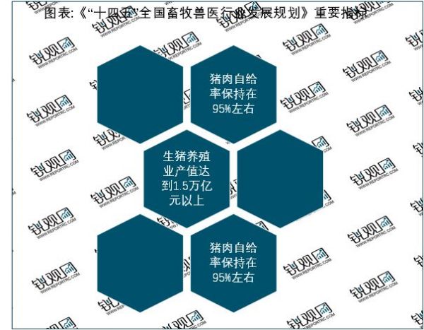 2021年12月14日,农业农村部发布《“十四五”全国畜牧兽医行业发展规划》,《规划》指出,优化区域布局与产品结构,重点打造生猪、家禽两个万亿级产业,奶畜、肉牛肉羊、特色畜禽、饲草四个千亿级产业,着力构建“2+4”现代畜牧业产业体系。落实生猪稳产保供省负总责和“菜篮子”市长负责制,确保猪肉自给率保持在95%左右,猪肉产能稳定在5500万吨左右,生猪养殖业产值达到1.5万亿元以上,着力提升发展质量,加强产能调控,缓解“猪周期”波动,增强稳产保供能力。