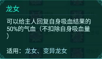 以大家熟悉的龙女为例,凑齐三个龙女星魂即可激活特定效果:给主人回复自身吸血结果的50%的气血,且不扣除自身吸血量。这对于69级的同学,无疑就是神技,更是进一步加强了人物的站场能力。
