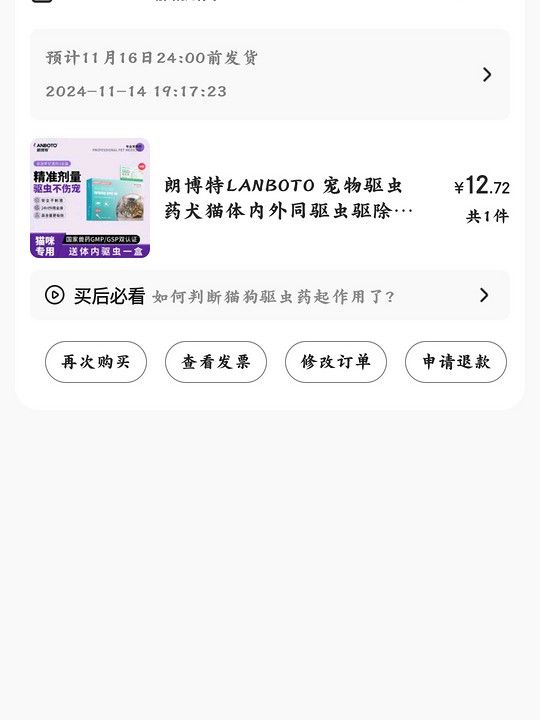 网址: LANBOTO 宠物驱虫药 猫用外驱 0.5ml*3支+赠品内驱 4片 19.9元包邮(需用券) https://m.mcbbbk.com/newsview743140.html