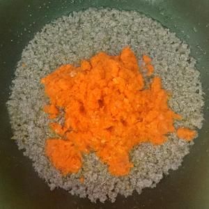 加入胡萝卜末,继续把胡萝卜炒熟。