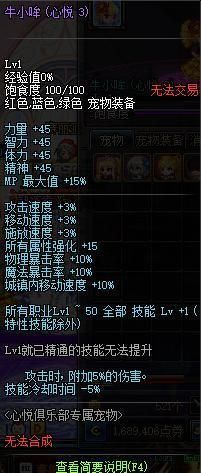 三个级别的宠物仅仅是在外观上不一样,属性都是一致的: