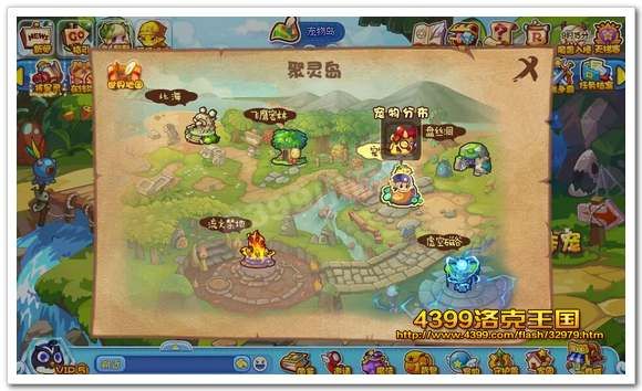 点开小地图,聚灵岛上每个场景分布着各个合体宠物哦!