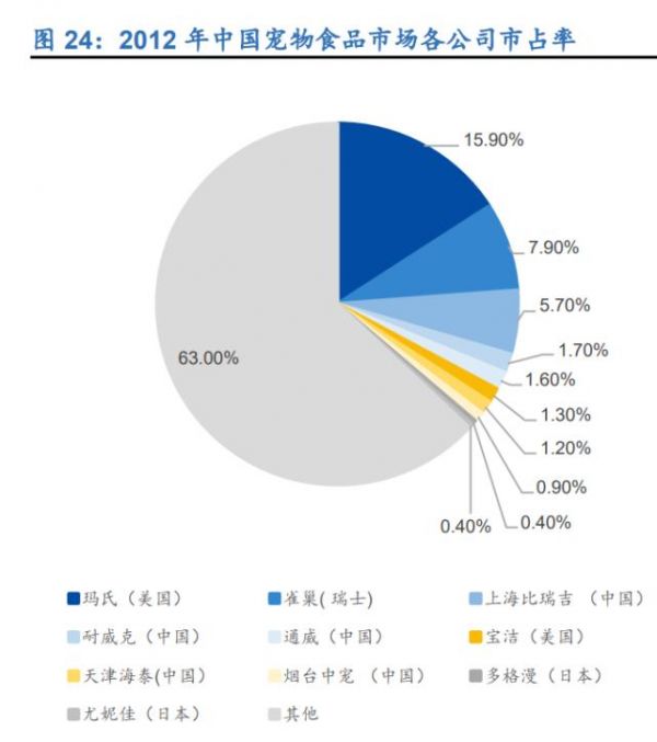 在过去的二十几载里,皇家、玛氏等宠物食品进入中国,拉开了我国宠物食品专业化的序幕。最近几年来,随着宠物食品市场规模的不断扩充,我国成为仅次于美国的全球第二大宠物食品市场。然而,中国家庭的宠物保有量仅为两成左右,远不及欧美等国家,我国宠物食品市场显现出极大潜力。