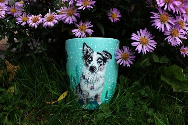 除了在杯子上面绘制宠物,她还添加了一些自然的元素。
