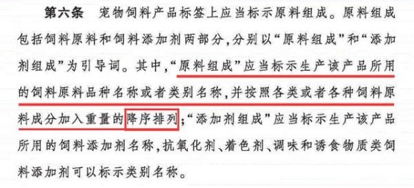 原料比例排序最初只有进口粮是这样做的,而部分国产粮就是胡乱标排第四第五的原料也标在第一位,让人以为配方极好。后来《宠物饲料标签规定》出台,2019年9月1日以后生产的国产和进口宠物饲料产品所附具的标签,应当符合《宠物饲料标签规定》的要求,就结束了那个群魔乱舞的时代。