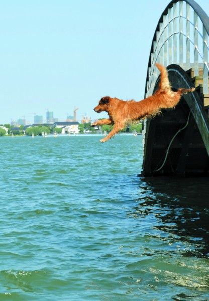昨日,金鸡湖一座拱桥上,一只三岁的拉布拉多宠物犬纵身从2米多高的桥上跳入湖中,寻找自己心爱的玩具。在找到玩具后送回到主人手中,又跑向桥上,示意主人扔下再次戏水。精彩的“跳水”表演吸引了不少游客驻足观看,并不时发出阵阵掌声。记者 张健摄